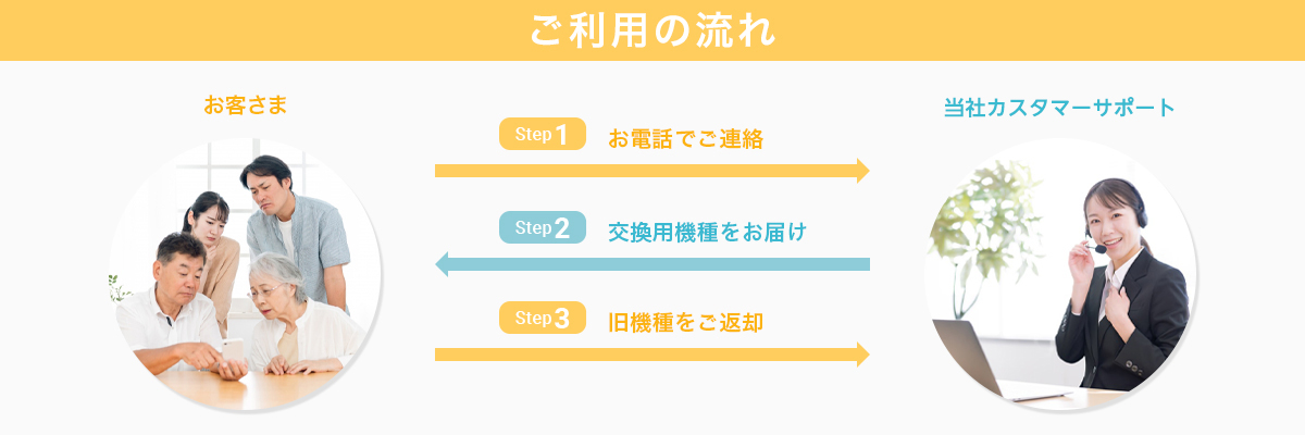 - 同一機種・同一色の提供が困難な場合、別途当社が指定する機種・色の交換用機器をご提供します。